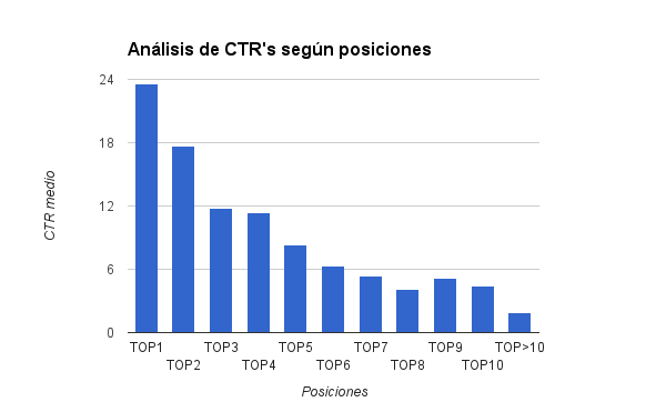 Podemos observar cuanto se necesita de números de CTR que es dependiendo del lugar del navegador