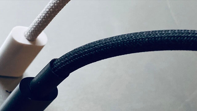 Ninguno de los productos actuales de Apple, excepto la HomePod, ha tenido un cable de tela, trenzado o de tejido. El único producto que tiene un acabado de este estilo es la HomePod con un cable poroso que va del cuerpo de la bocina hacia la pared este cable trenzado es una buena opción para uso rudo.